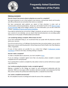 - We only have the power to deal with complaints about physicians – we cannot process complaints about hospitals, clinics, or medical professionals who are not physicians.